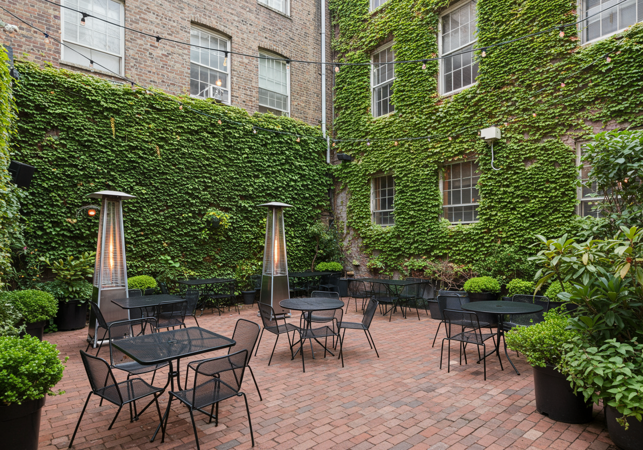 Dig into a decadent dessert as you share memories or laugh about each other's flirting game. You can choose to sit in the cozy interior or kick back in the courtyard, where live music drifts in the air, setting the mood for your perfect night.